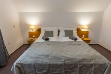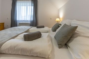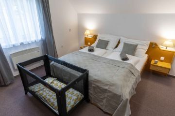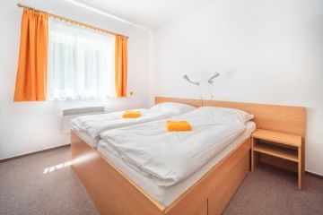 Dva spojitelné dvoulůžkové pokoje pro rodiny nebo skupiny. Každý pokoj má vlastní sociální zázemí. Oceníte dostatek úložného prostoru a pobyt vám zpříjemní výhled do okolní přírody. Cena za jeden pokoj.